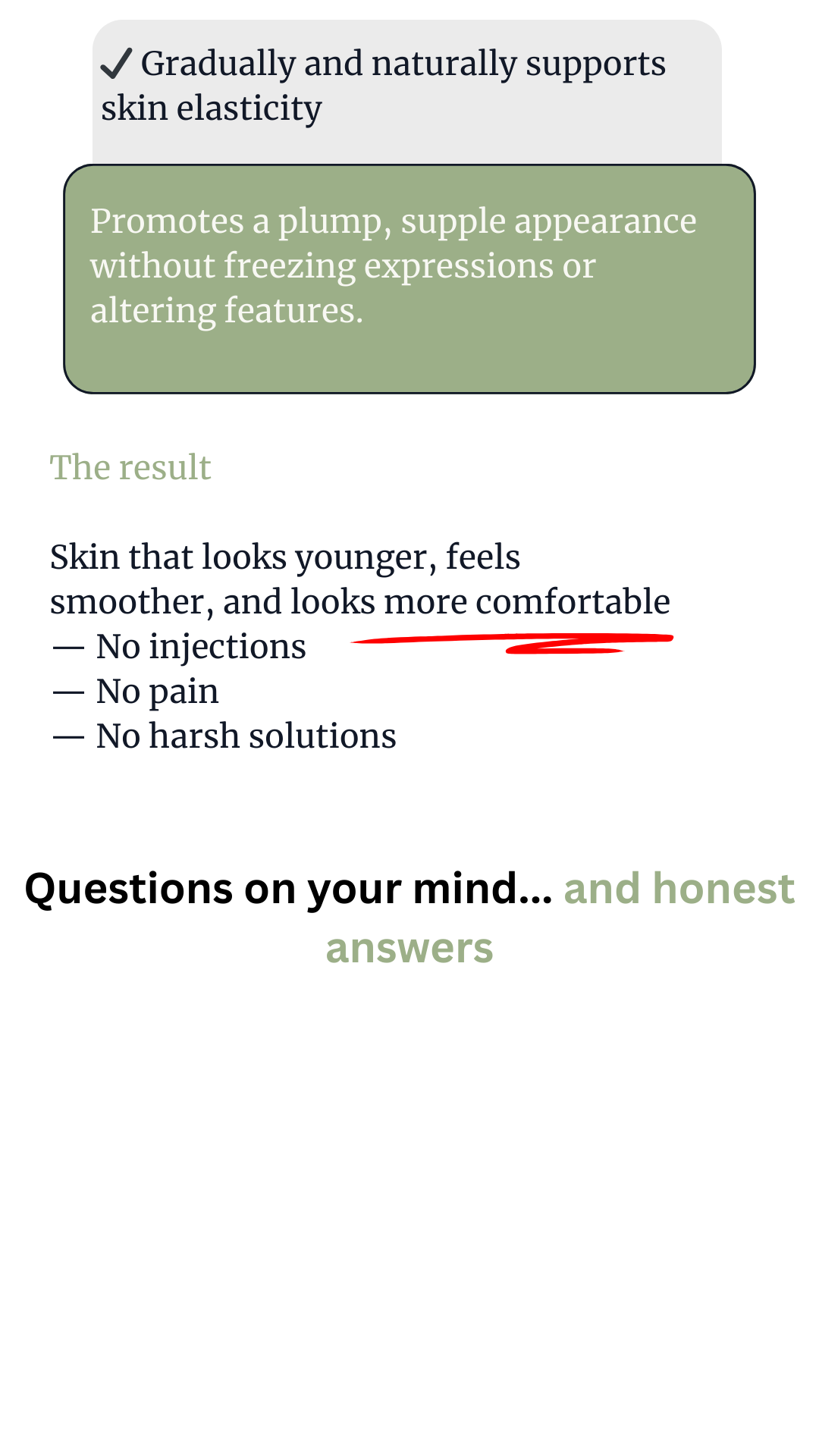 This is not a temporary fix that gives a false appearance for a few hours. It is real support for the skin: With continued use, the skin begins to improve in smoothness, comfort, and the appearance of lines—naturally and in a balanced way.